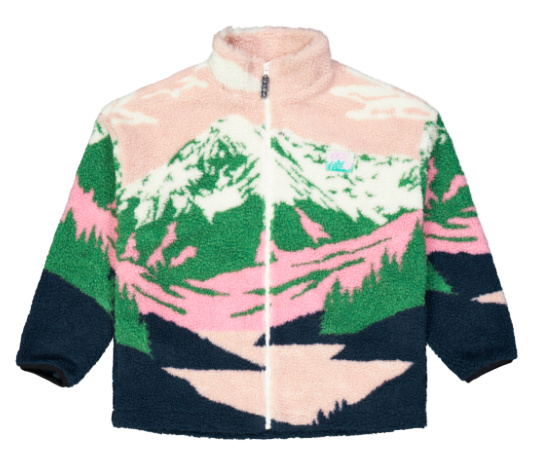 Bold outdoor-inspired jacquard sherpa fleece jacket