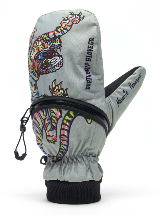 Melodie Perrault is fan and brand favorite. The Quebec born and Montreal, Canada-based artist came up tattooing friends before becoming a social media sensation and eventually leading her own apparel brand. Themes of female empowerment through a female lens are some of her most compelling. But for DEATHGRIP, it’s her use of color and illustration that have struck the beautiful balance found on her signature Ghoul mitt.