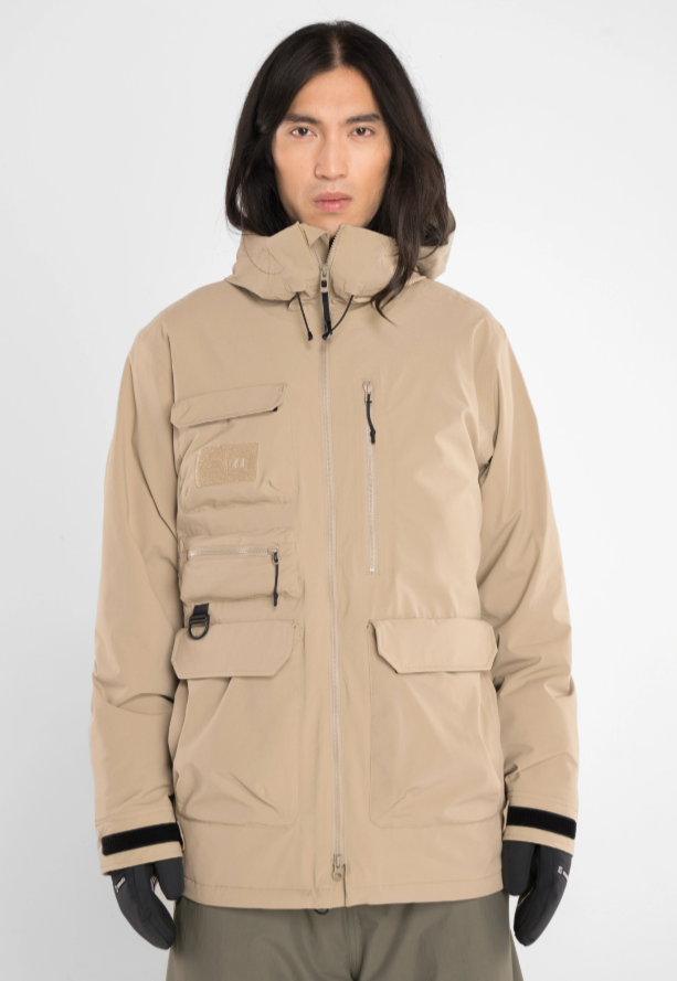 The Utility Jacket combines military-inspired style cues with a tough, technical construction for a unique look and durable performance on the hill. 84% nylon, 16% elastane fabric backed by 60g of quilted insulation keeps you warm and dry with 10K/10K protection and enough stretch to move any way you want. It has all the pockets, including two zip front chest pockets to keep items extra secure and a pair of multi-functional handwarmer pockets to stow gear and keep your digits warm. Details like a powder skirt, wrist gaiters, and cinches at the hood and hem seal out the elements. When there’s plenty of items you can’t leave home without, don’t leave home without the Utility Jacket.