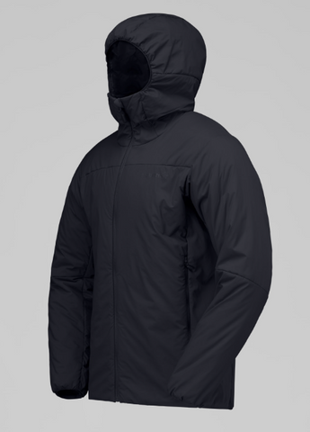 We use thermo60 synthetic insulation (60g in the body and 40g in the arms and hood) because it provides excellent warmth-to-weight ratios, good packability, and insulation even when wet.