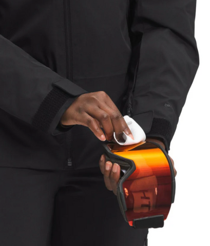 - Covered wrist pocket with security zipper with eyeglass wipe