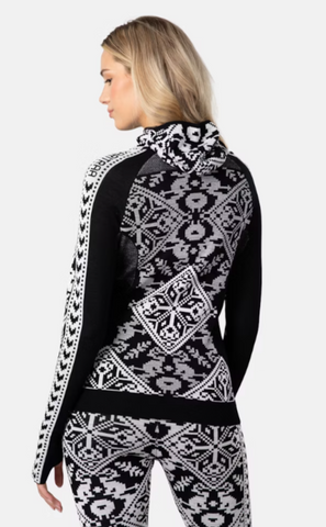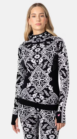 A showstopping baselayer designed to move with you, the Kari Traa Saga Hood blends bold Nordic inspiration with warm wool comfort. 4-way stretch fabric allows for unrestricted movement while strategic mesh enables ventilation and thumb holes offer cozy comfort. A fixed hood adds extra insulation under a helmet or hat to keep heat in and elements out on the coldest of days.